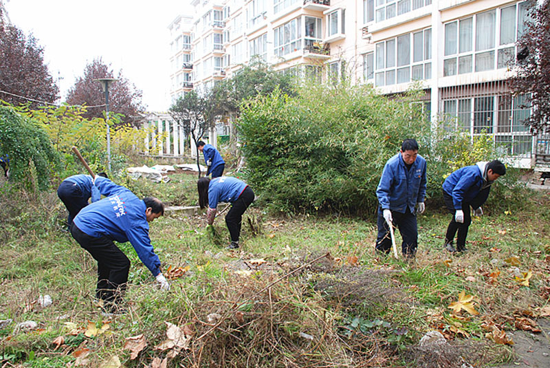 下午 2點(diǎn)一上班,參加學(xué)雷鋒義務(wù)勞動(dòng)的10個(gè)黨支部的60多名黨員在生活區(qū)球場集中,黨委工作部部長姚保忠安排了此次主題教育的規(guī)定動(dòng)作——學(xué)雷鋒志愿活動(dòng)。物業(yè)公司經(jīng)理張巨宏首先強(qiáng)調(diào)了參加義務(wù)勞動(dòng)的安全注意事項(xiàng),并根據(jù)不同區(qū)域的工作量,分配了具體任務(wù)。黨員學(xué)雷鋒義務(wù)勞動(dòng)主要為清理5#樓——9#樓周邊垃圾、雜草、樹葉,打掃衛(wèi)生以及清理5#—9#樓各樓道內(nèi)的垃圾,保證消防通道暢通。各組領(lǐng)受任務(wù)之后,立即分頭行動(dòng),大家有的拿鐵鍬,有的拿掃把,有的割草、有的揀垃圾,干的熱火朝天。剛出差回來的黨委副書記蔣俊也參加到義務(wù)勞動(dòng)的行列,清理雜草、樹枝、垃圾,有的同志沒有工具就用手揀垃圾。姚保忠、張巨宏一邊協(xié)調(diào)聯(lián)系垃圾清運(yùn)車輛,一邊參加義務(wù)勞動(dòng)。有的支部書記親自帶隊(duì)參加,有的支部因工作任務(wù)只有部分黨員參加,但大家都干的非常認(rèn)真。到下午4點(diǎn)鐘,有的支部負(fù)責(zé)的區(qū)域衛(wèi)生已經(jīng)打掃完畢,就主動(dòng)幫助其他同志,有的則到指定區(qū)域外清理垃圾。有的職工家屬看黨員干的滿頭大汗說:還是黨員好!