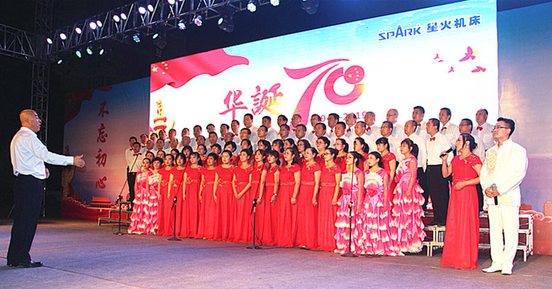 星火機(jī)床公司領(lǐng)導(dǎo)蔣保權(quán)、劉勝等,與部分老領(lǐng)導(dǎo)、勞模先進(jìn)工作者、職工家屬共同參加歌詠比賽,慶祝祖國生日。
