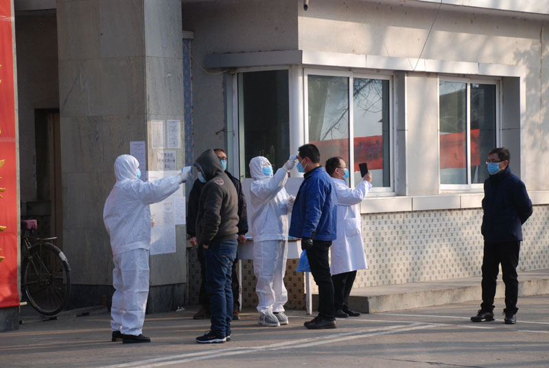 按照星火機床公司疫情防控要求,上班職工均佩戴口罩,互相之間拉開一定距離,在公司門口體溫測量合格后,有序的進入各自工作崗位。