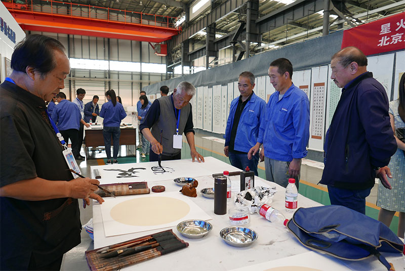 北京當代翰墨文化藝術院甘肅分院執行院長高萬意、副院長吳全通、胡小煒、秘書長黃淥明、副秘書長雷霽揚等11位老師應邀參加書畫展并進行現場書畫創作,開展為勞模、先進工作者和職工送字送畫送祝福活動。