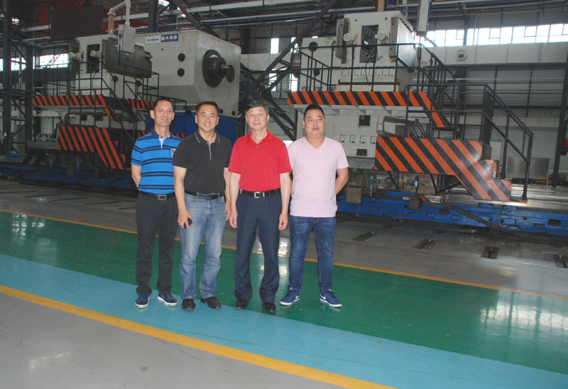 吳亞東說,我們已經三次訂購過你們的產品,至今還在使用。現在開拓了新的業務,今天專程來星火選購適合我們的產品。參觀過程中,吳亞東詳細了解星火機床公司產品的性能、特點、適用范圍,主要技術參數等。當看到重型分廠現場擺放的回轉直徑 6.3米的世界之最的重型臥式機床時,吳亞東表示驚嘆,并與李董事長等在機床旁合影留念。