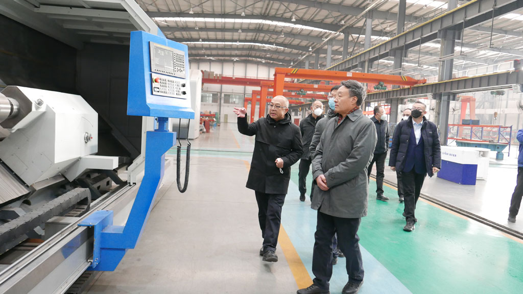 星火機床集團公司黨委副書記、副總經理蔣俊在公司生產現場向祁建邦一行詳細介紹了企業生產經營、產品研發、技術創新、項目建設進展及企業發展前景等情況。并陪同祁建邦一行參觀了公司研發生產的各系列大、重型數控機床產品。