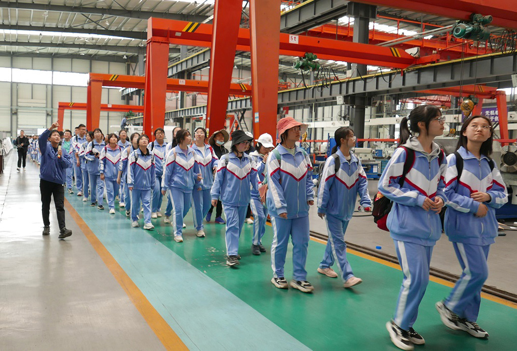 參觀生產(chǎn)現(xiàn)場(chǎng)時(shí),蔡建欣向老師和同學(xué)們介紹了正在生產(chǎn)的各種主要產(chǎn)品的功能、用途。在公司展廳,她向老師和同學(xué)們介紹了公司獲得的各種榮譽(yù)、發(fā)展歷程、重大事件和產(chǎn)品結(jié)構(gòu)變化,以及公司勞模、工匠等先進(jìn)人物。通過(guò)聽(tīng)介紹、看實(shí)物,同學(xué)們不停地發(fā)出感嘆和震驚,對(duì)星火公司及機(jī)床有了更深的認(rèn)識(shí)和了解。