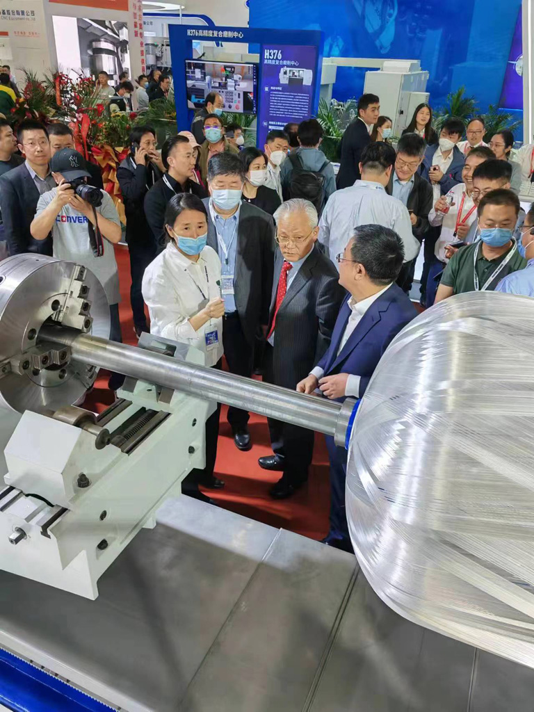邱鋼、王黎明一行認真細致的參觀了星火機床集團公司展出的多軸聯動復合材料纏繞機床,詳細了解了該機床的性能參數、技術優勢以及應用領域,并對星火機床技術創新工作給予充分肯定。
