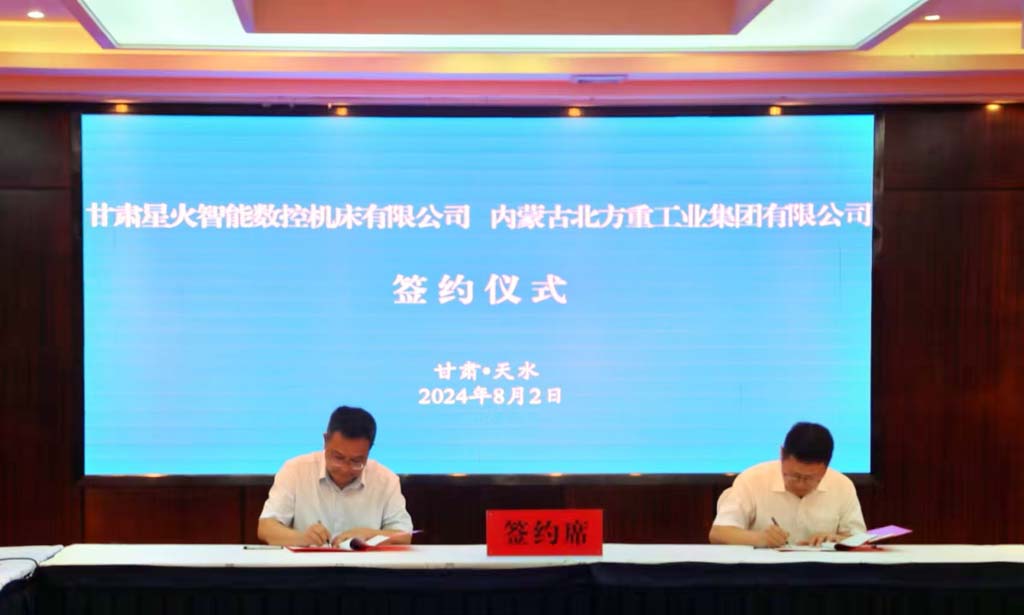 甘肅星火智能數控機床有限公司黨委書記、董事長蔣保權,內蒙古北方重工業集團有限公司副總經理華金虎代表雙方企業簽署合作協議。
