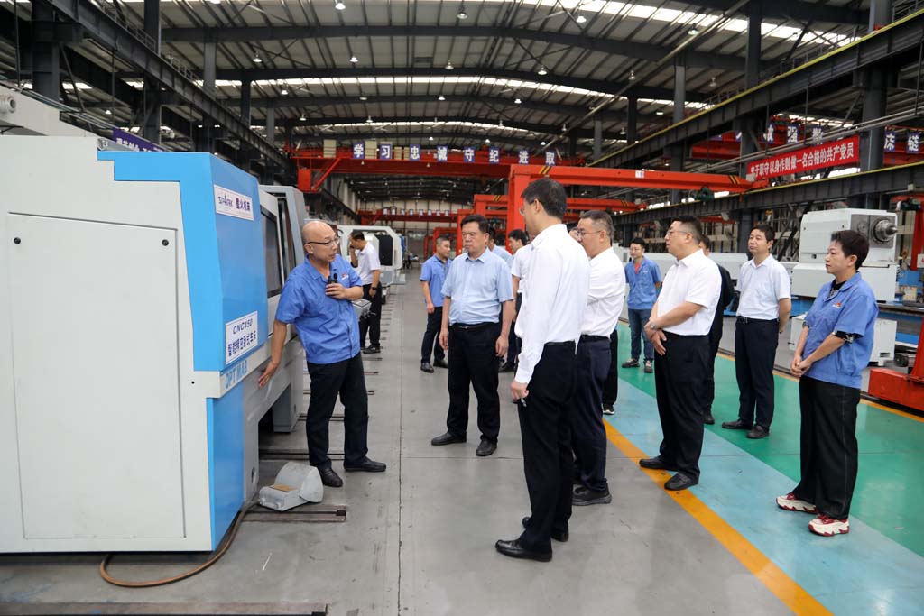 蔣俊代表公司向前來參觀和指導工作的各位領導表示歡迎,并詳細介紹了星火的歷史沿革、發展變化、企業文化以及科技創新等情況。在星火公司生產現場,領導們對裝配調試中的五軸聯動車銑復合加工中心和車輪車床、重型臥式車床等產品,紛紛贊不絕口,直觀的見證了星火的創新實力。