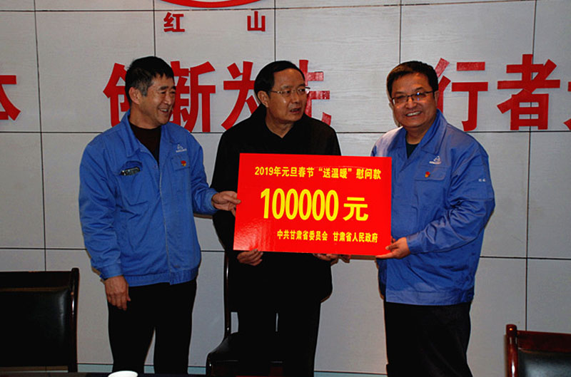 歐陽堅說,新春佳節即將到來,受省委省政府委托,省政協和省總工會、省殘聯的同志來天水,既看望貧困戶、困難職工和勞模、先進個人,同時也看望經營困難的企業。你們公司去年經營有些困難,省委省政府、市委市政府非常關心,在春節到來之際,給大家送來精神的撫慰和良好的祝福,同時給大家送上10萬元慰問金,讓大家增強信心,感受社會的溫暖,2019年實現開門紅,把生產經營搞好,讓企業逐步走向正規。借此機會,祝大家新春快樂,身體健康,闔家幸福。